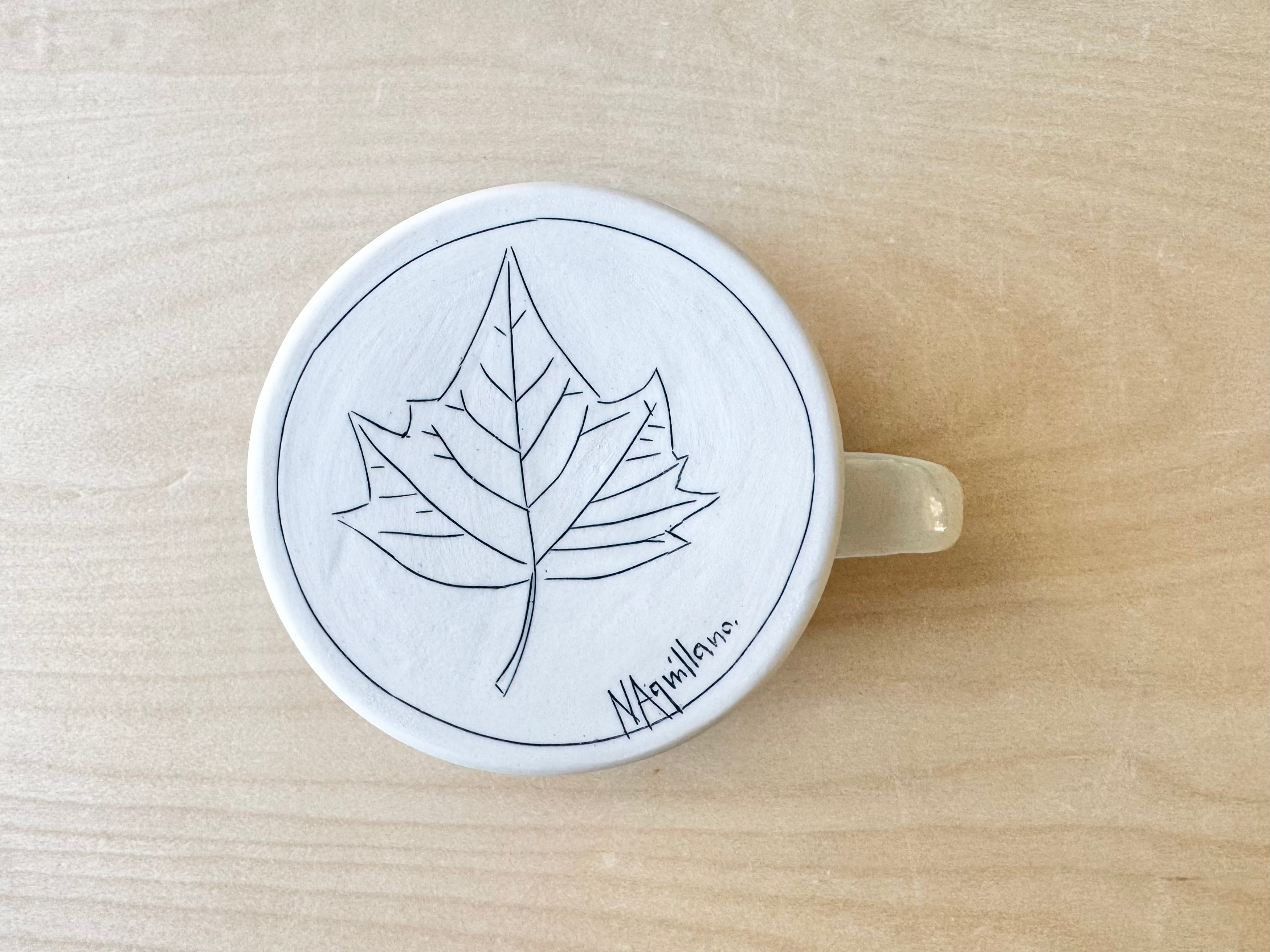 A one-of-a-kind mug inlaid with imagery. Ready-to-ship mug holds approximately 24 ounces and is microwave & dishwasher safe!