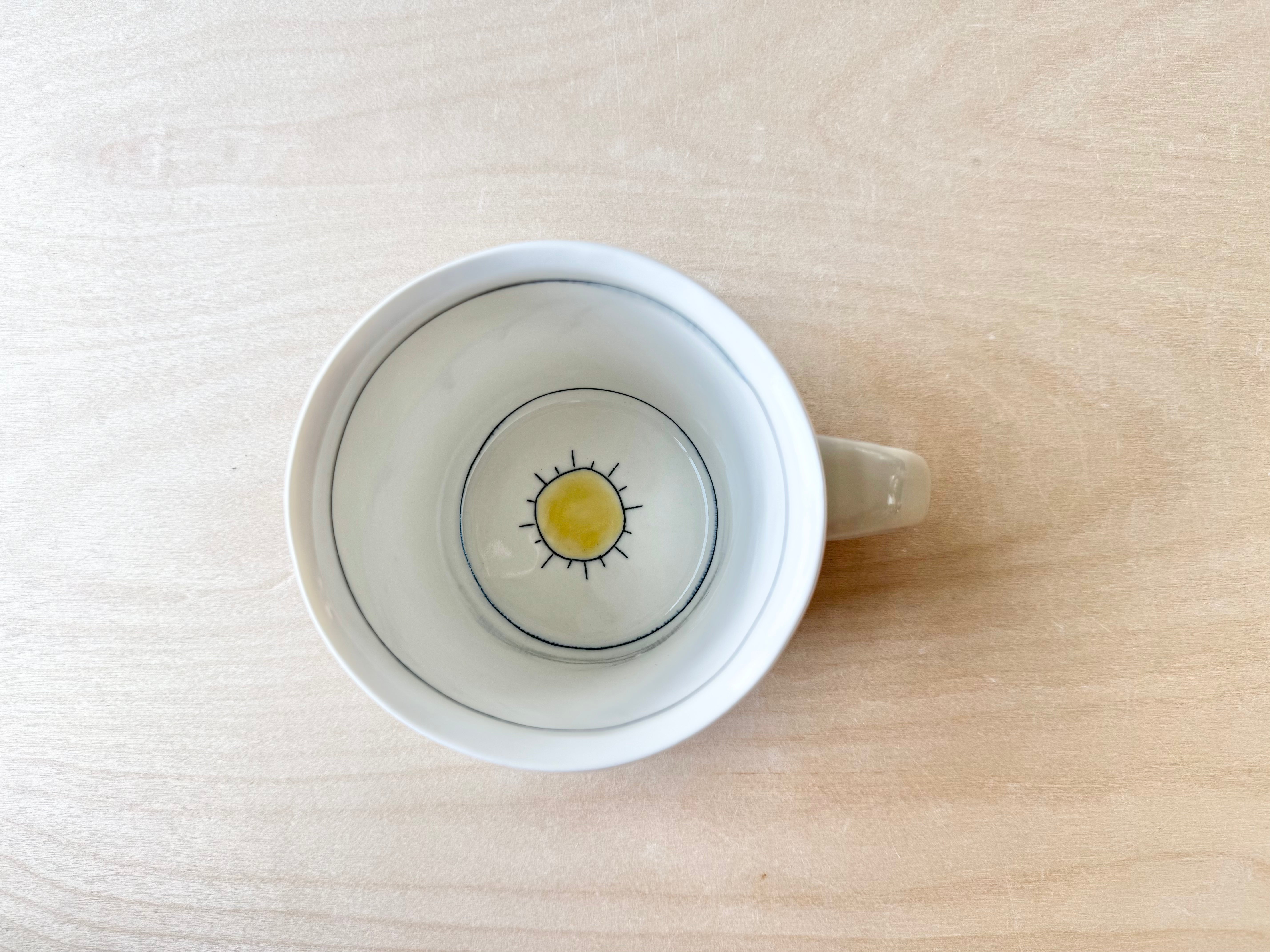 A one-of-a-kind mug inlaid with imagery. Ready-to-ship mug holds approximately 16 ounces and is microwave & dishwasher safe!