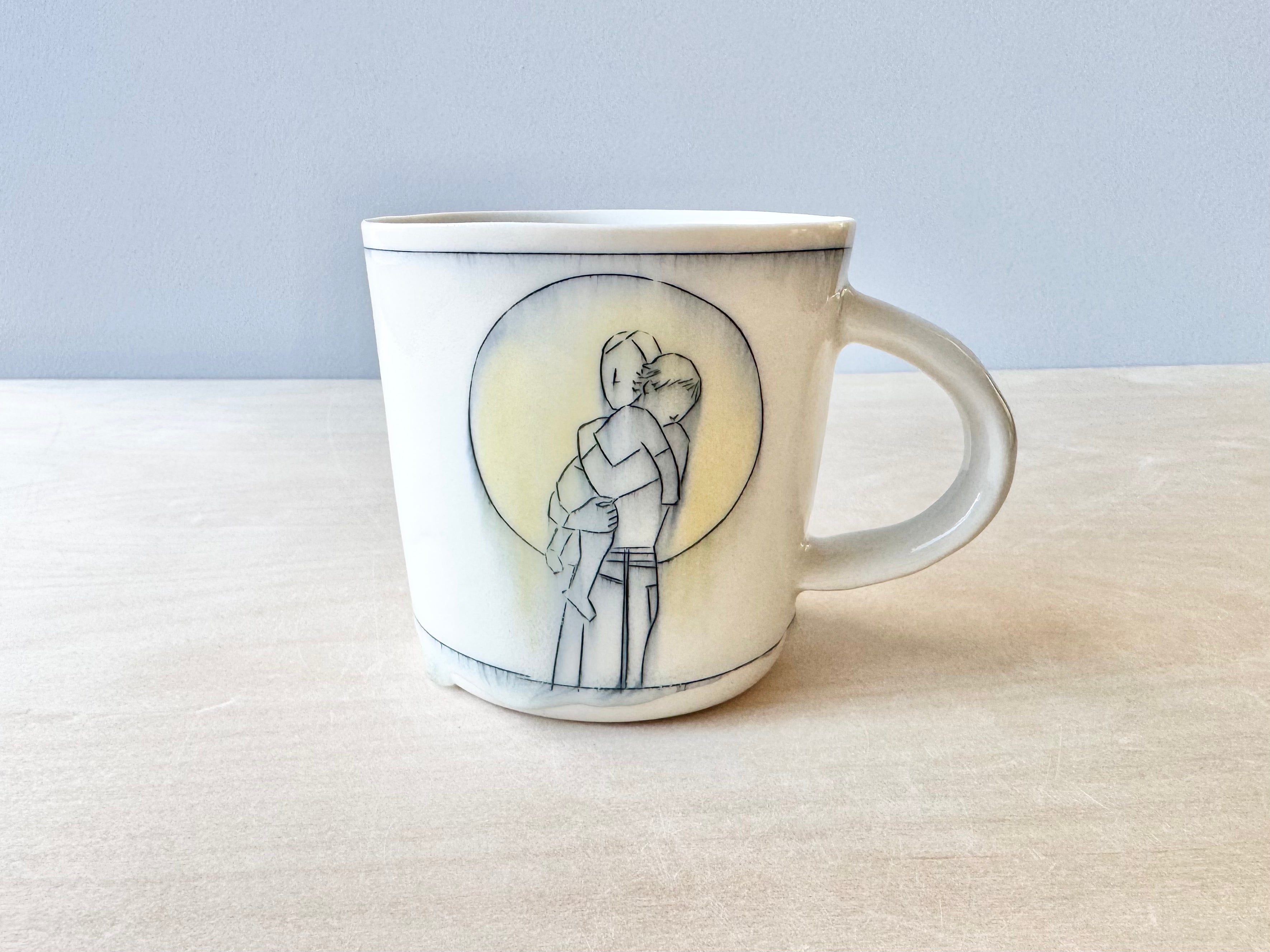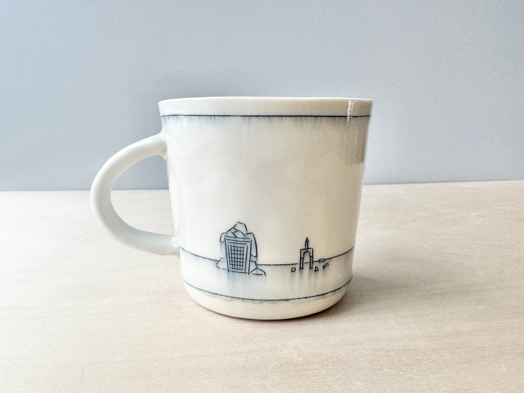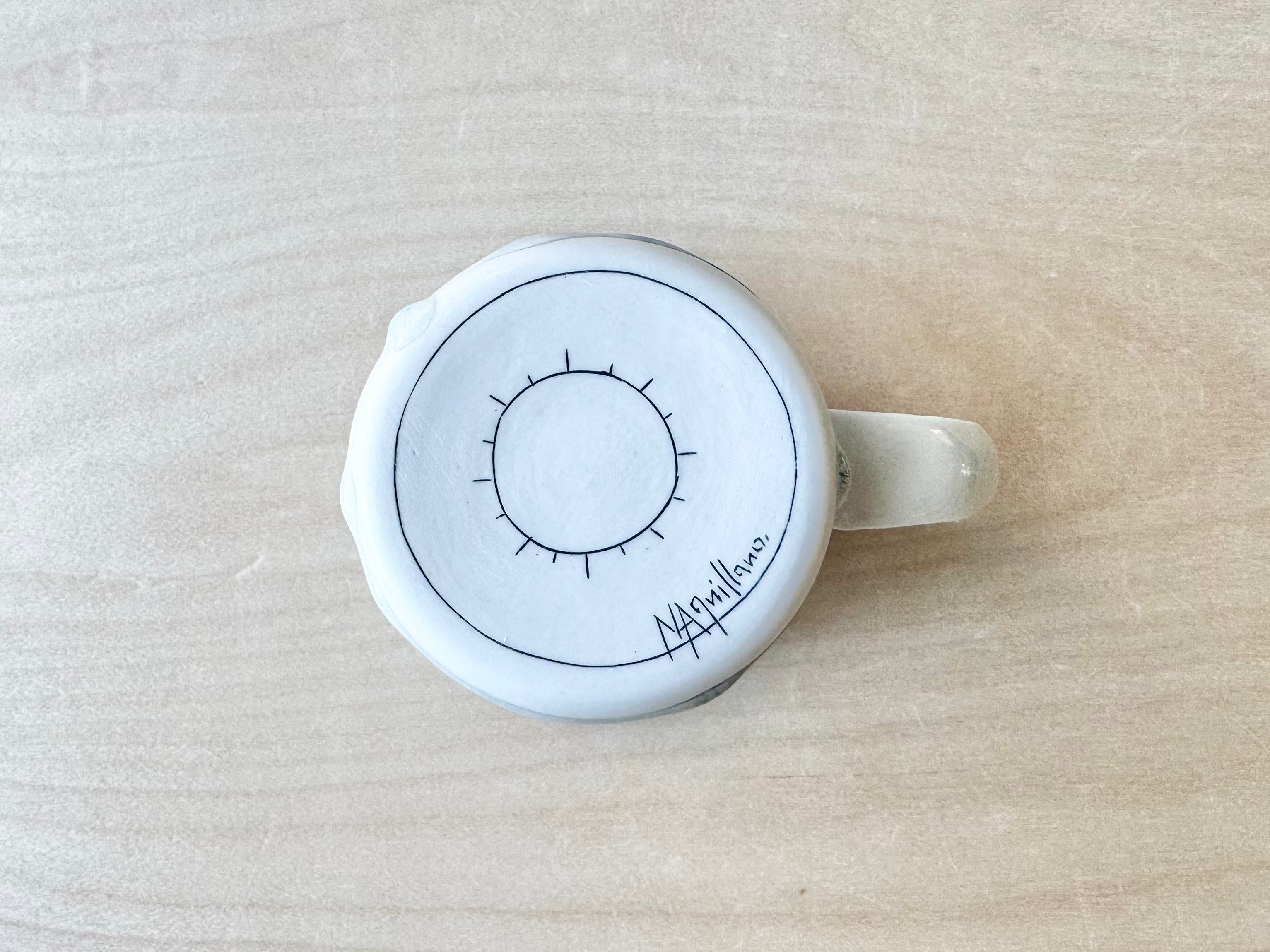 A one-of-a-kind mug inlaid with imagery. Ready-to-ship mug holds approximately 16 ounces and is microwave & dishwasher safe!
