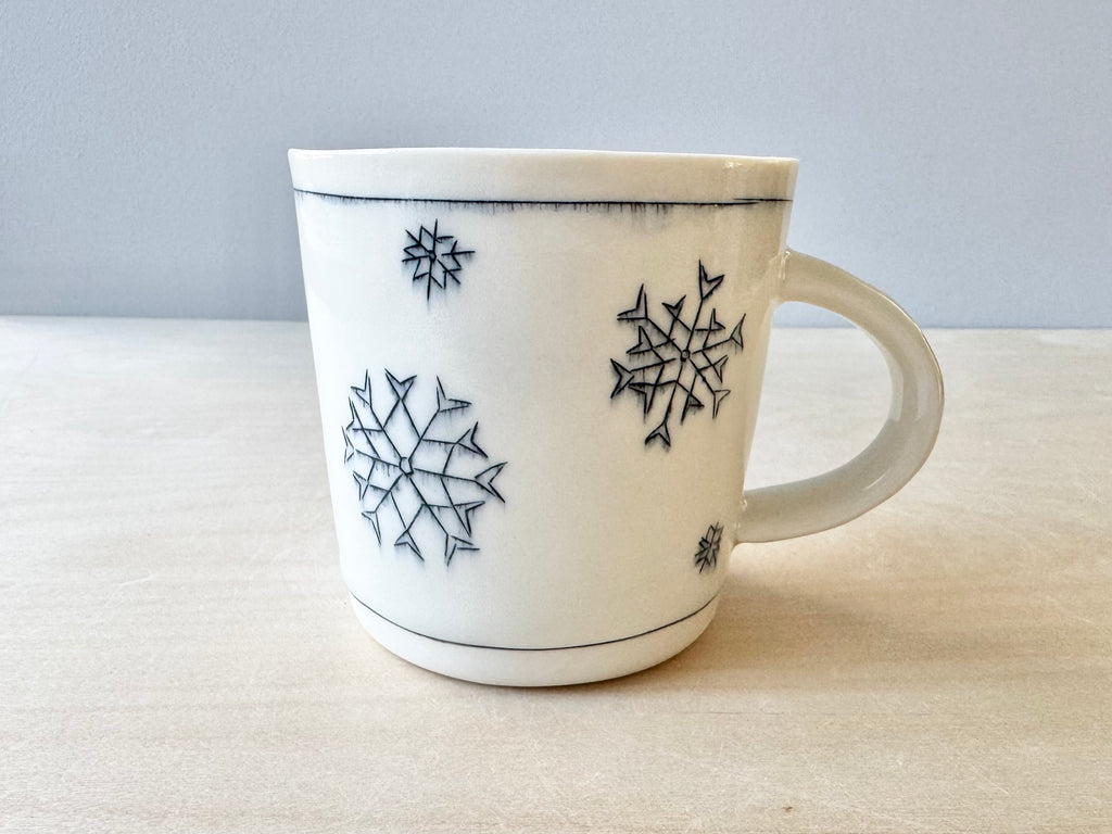 A one-of-a-kind mug inlaid with imagery. Ready-to-ship mug holds approximately 16 ounces and is microwave & dishwasher safe!
