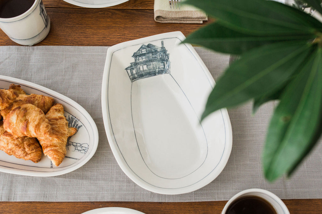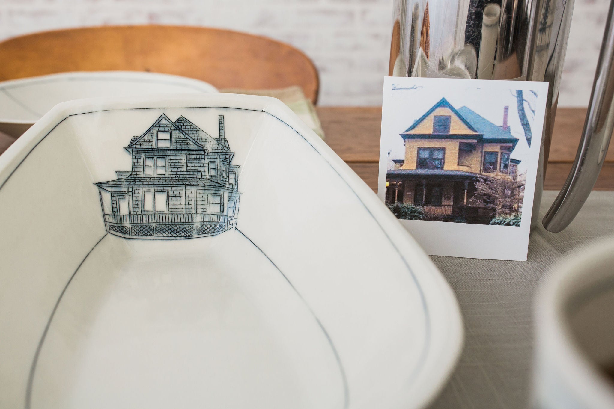 Serving Dish measures 10.5 inches long x 8.25 inches wide x 3.5 inches tall, and is perfect to serve a special entree or side, and is a great shape to prop up and display when not in use!