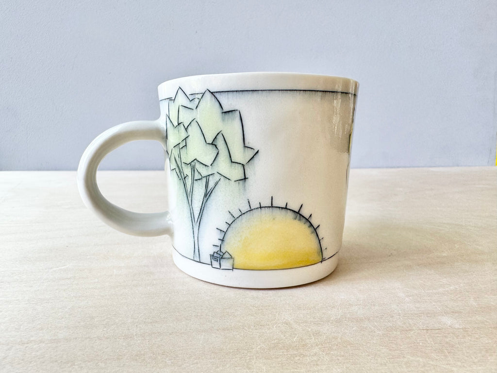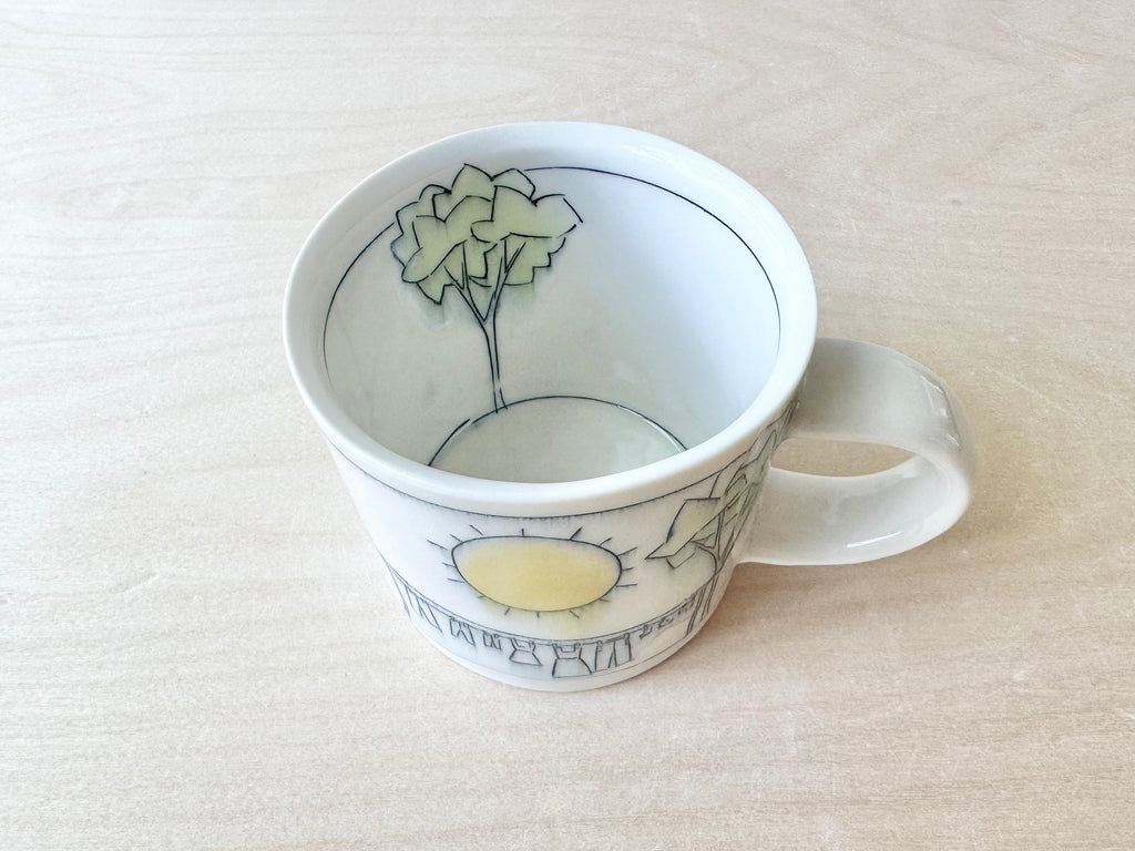 A one-of-a-kind mug inlaid with imagery. Ready-to-ship mug holds approximately 12 ounces and is microwave & dishwasher safe!