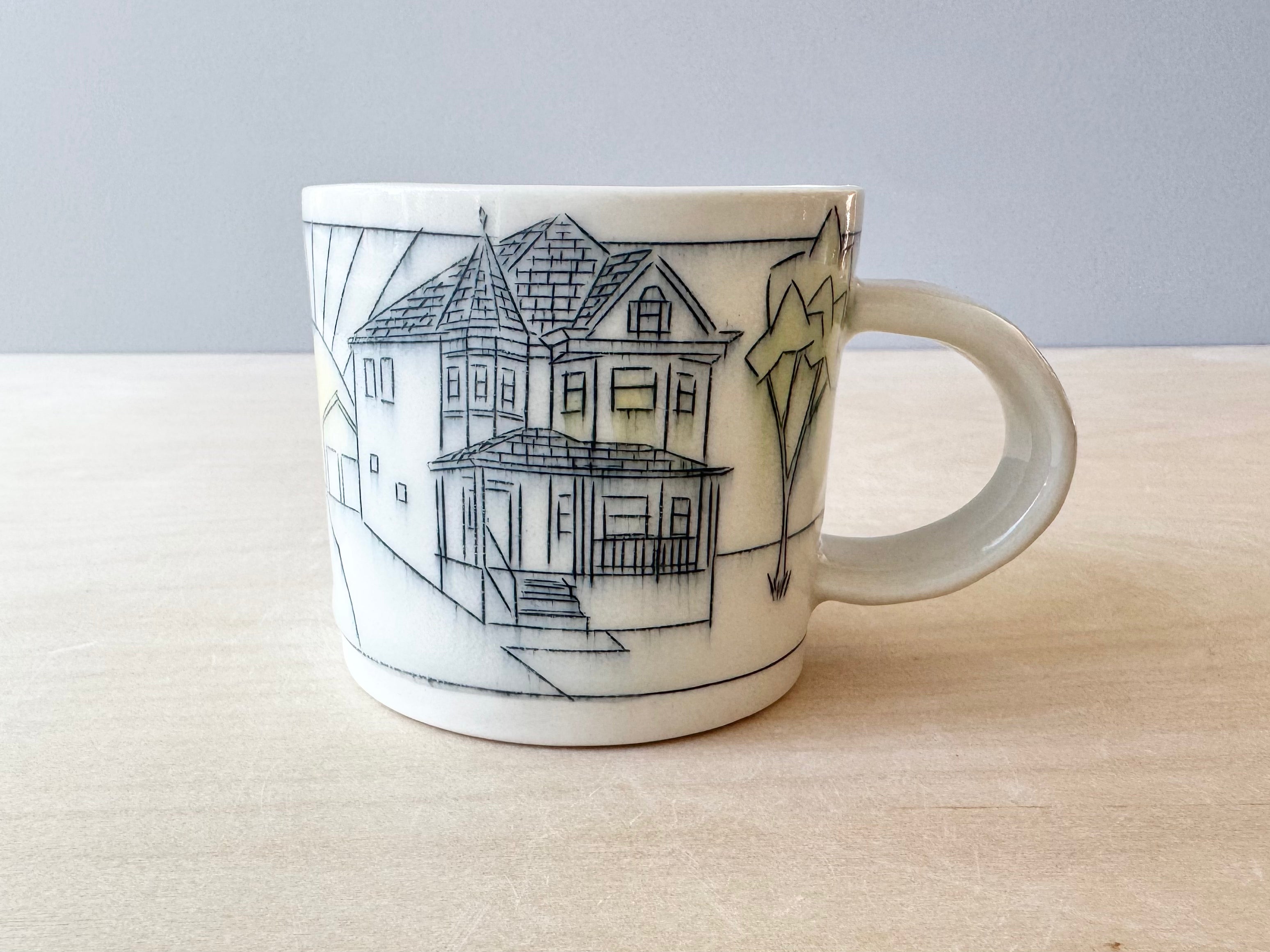 A one-of-a-kind mug inlaid with imagery. Ready-to-ship mug holds approximately 12 ounces and is microwave & dishwasher safe!