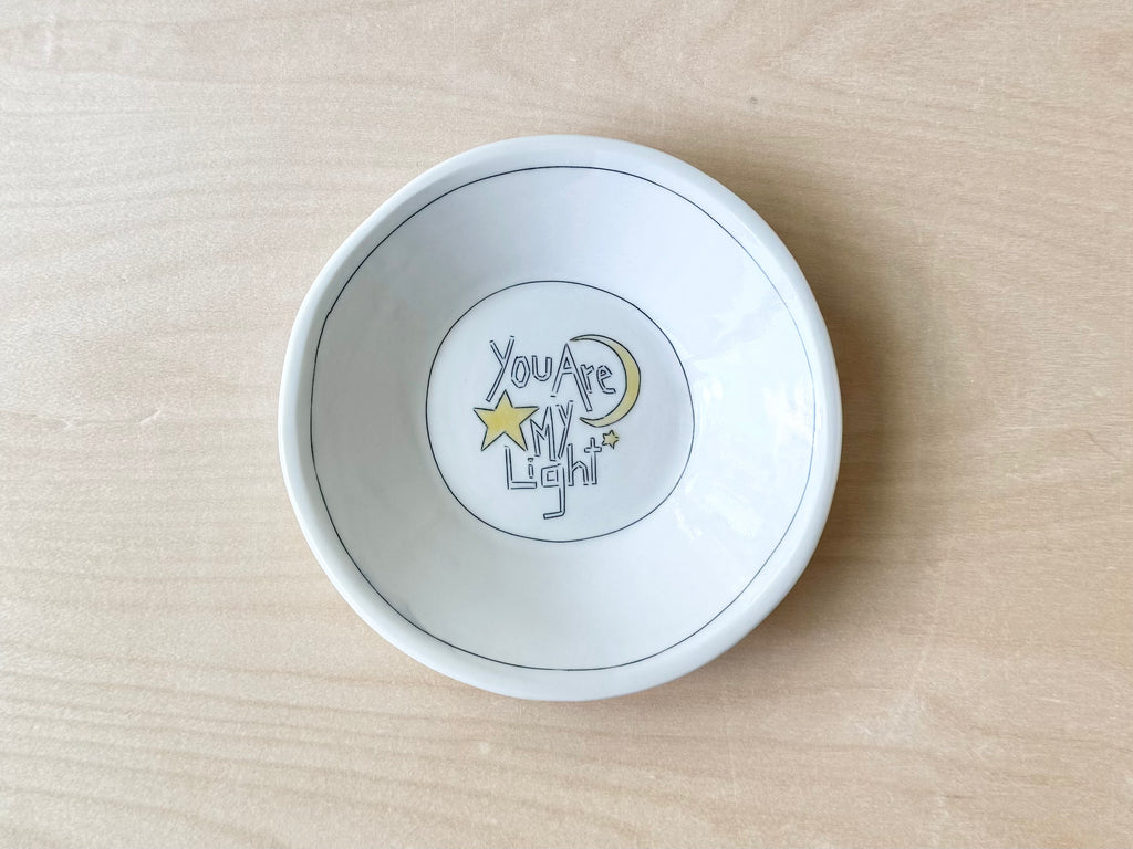 A one-of-a-kind small pasta bowl inlaid with imagery. Ready-to-ship dish measures about 7.25 in diameter x 1.25 inches tall and is microwave & dishwasher safe!