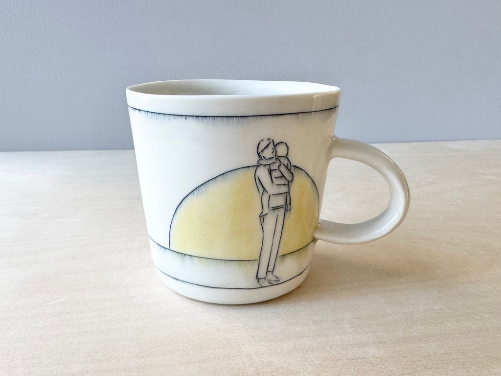 A one-of-a-kind mug inlaid with imagery. Ready-to-ship mug holds approximately 16 ounces and is microwave & dishwasher safe!