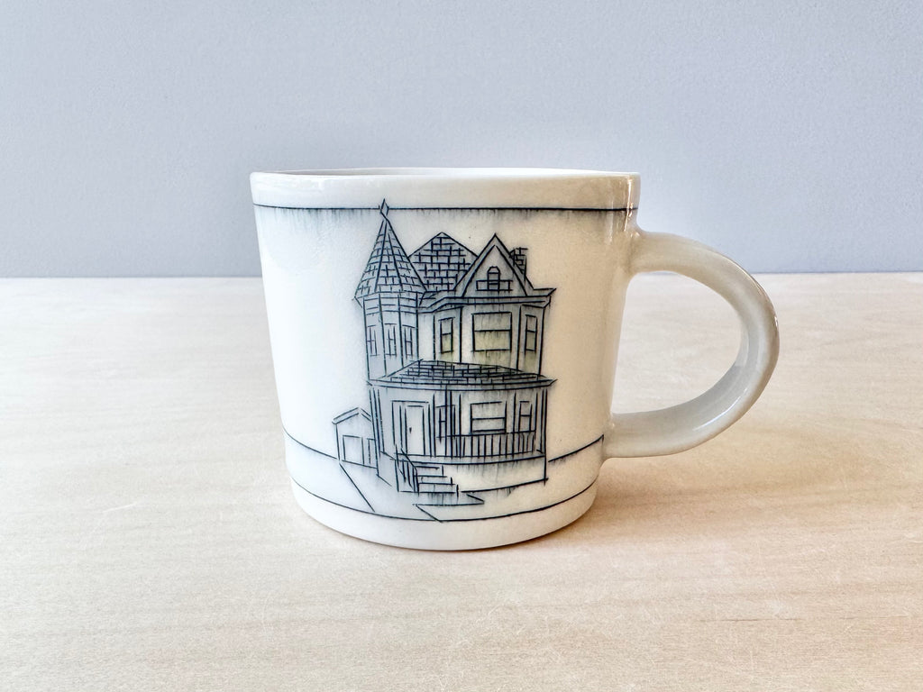 A one-of-a-kind mug inlaid with imagery. Ready-to-ship mug holds approximately 12 ounces and is microwave & dishwasher safe!