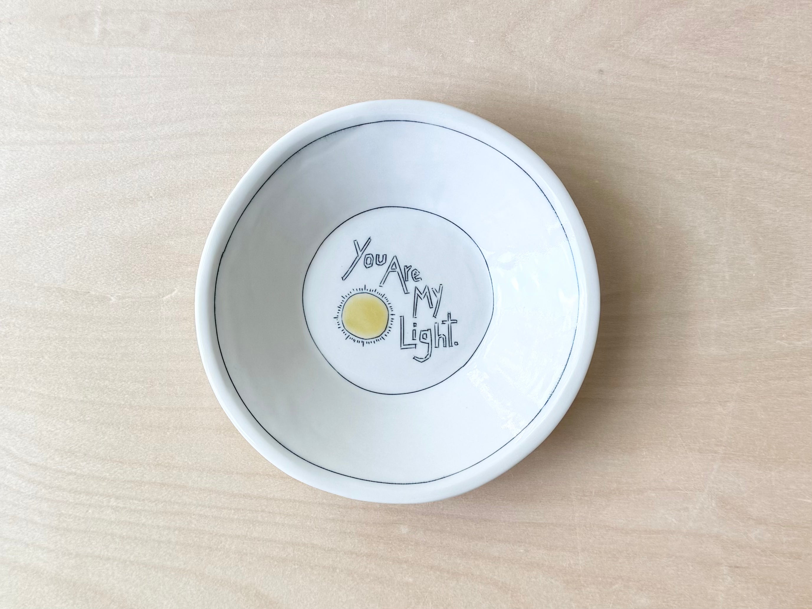 A one-of-a-kind small pasta bowl inlaid with imagery. Ready-to-ship dish measures about 7.25 in diameter x 1.25 inches tall and is microwave & dishwasher safe!