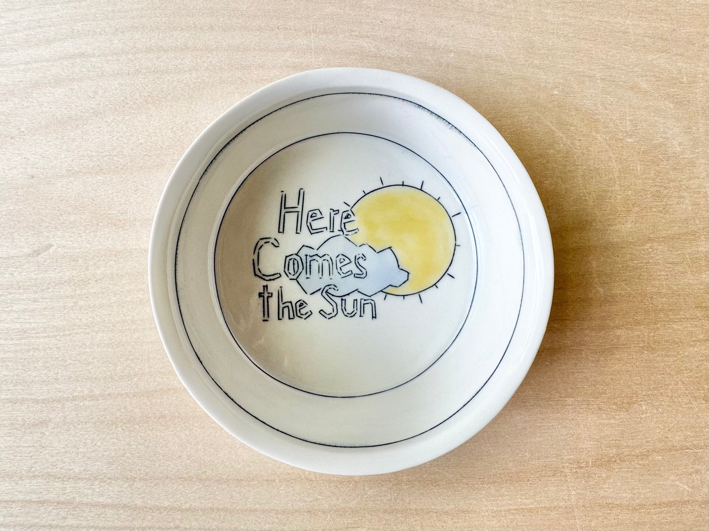 A one-of-a-kind small bowl inlaid with imagery. Ready-to-ship dish measures about 4.75 in diameter x 1.75 inches tall and is microwave & dishwasher safe!