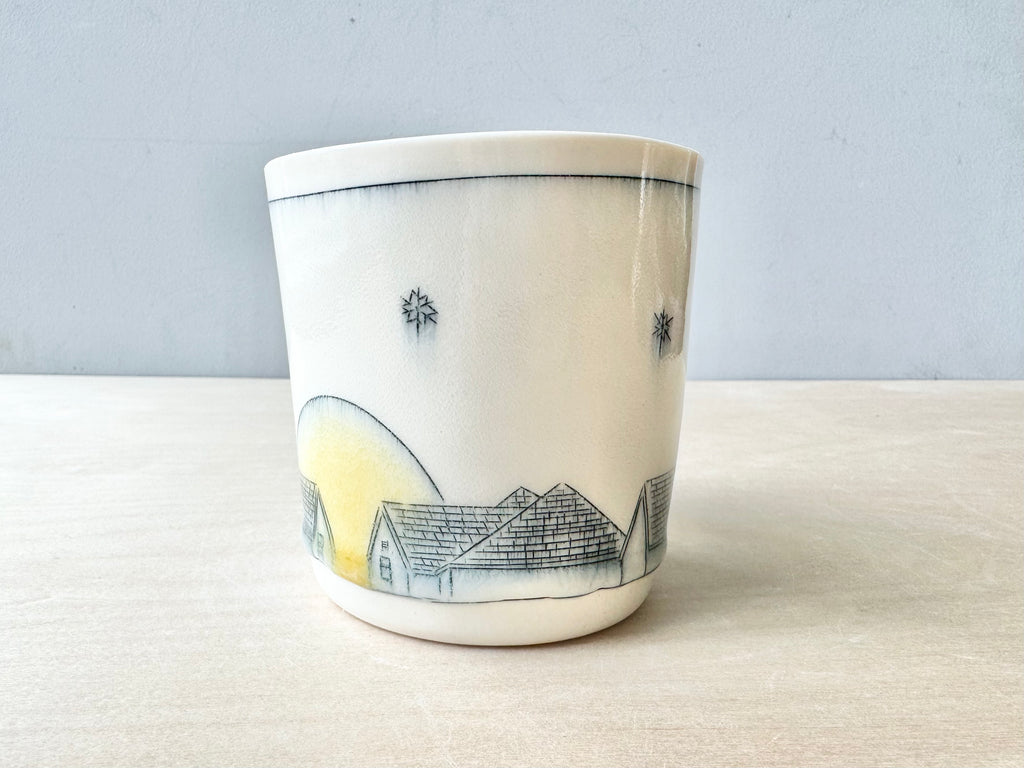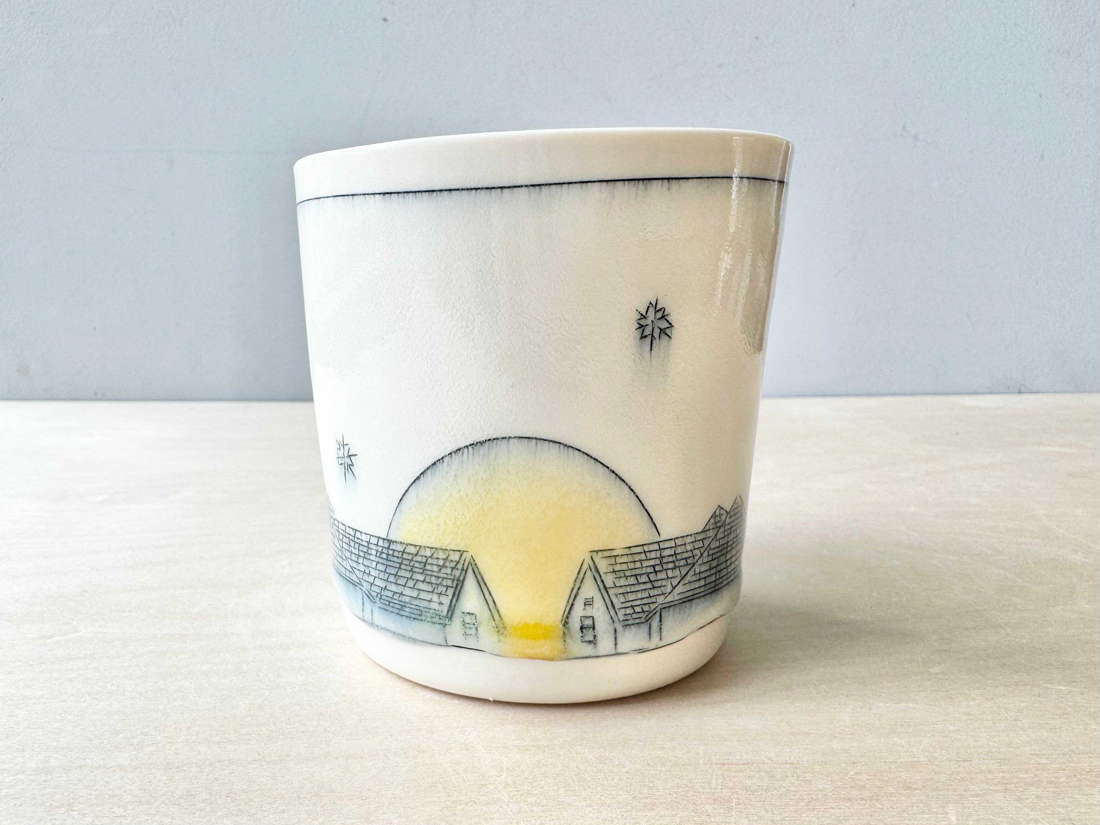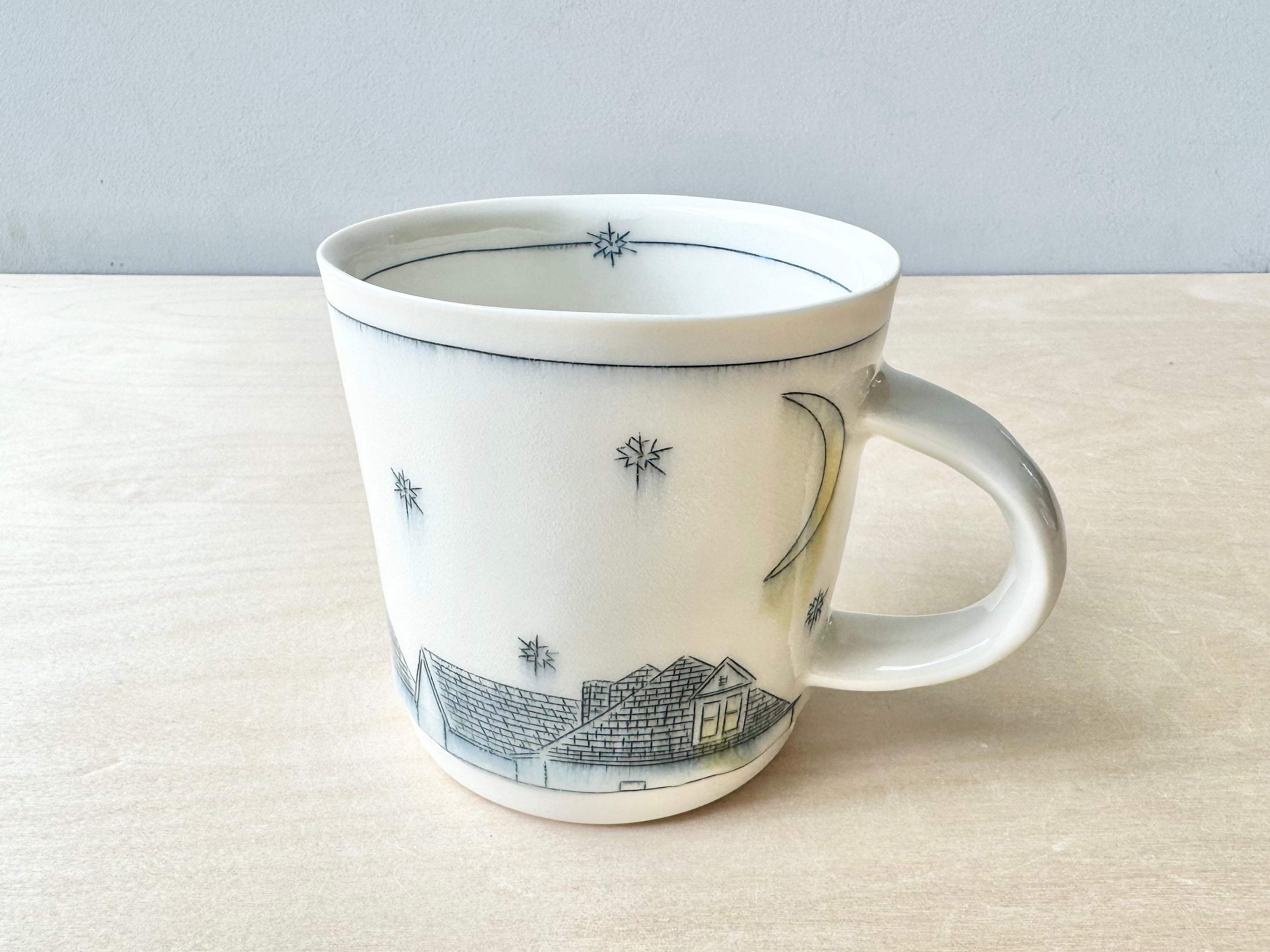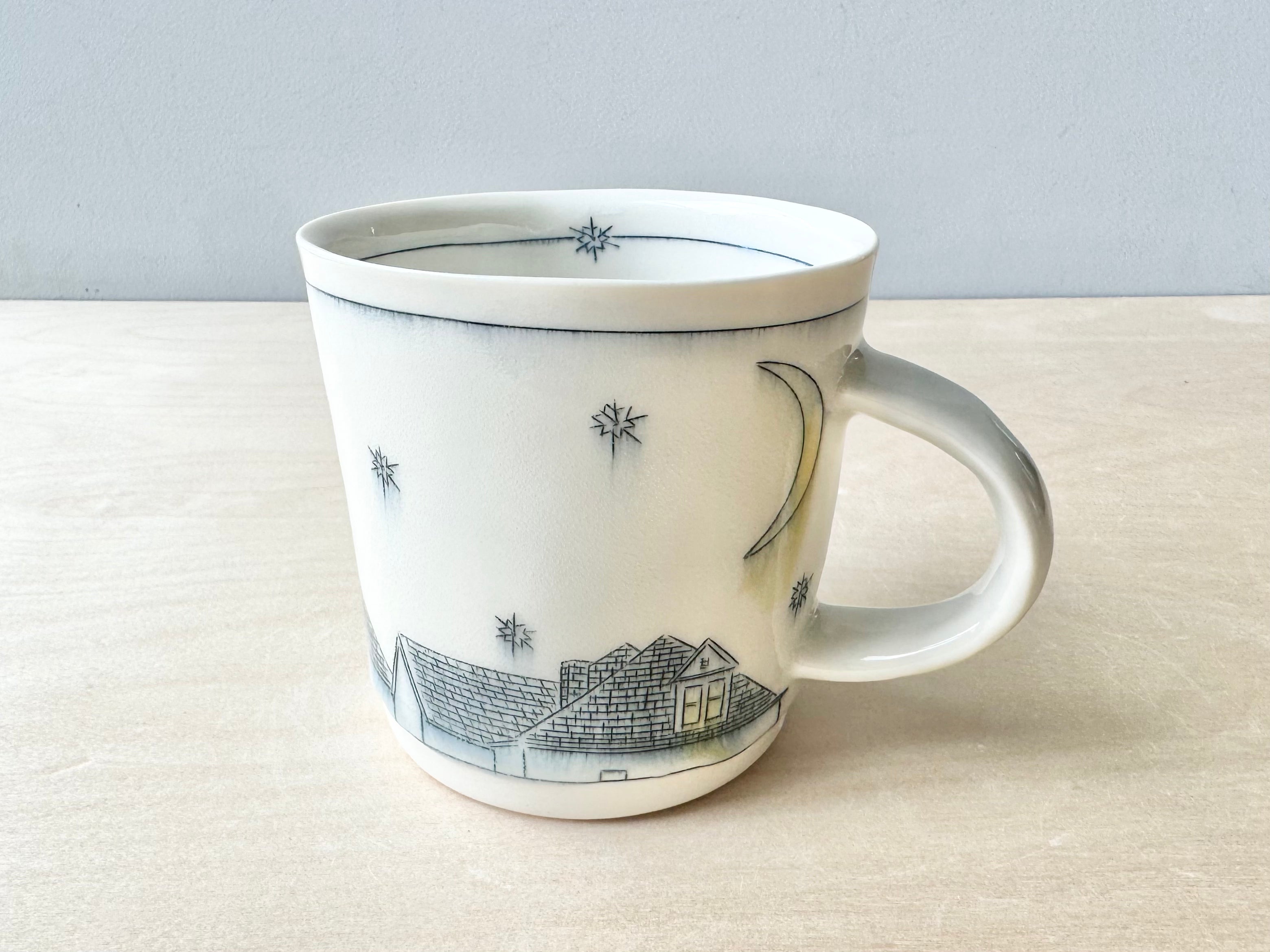 A one-of-a-kind mug inlaid with imagery. Ready-to-ship mug holds approximately 16 ounces and is dishwasher safe!