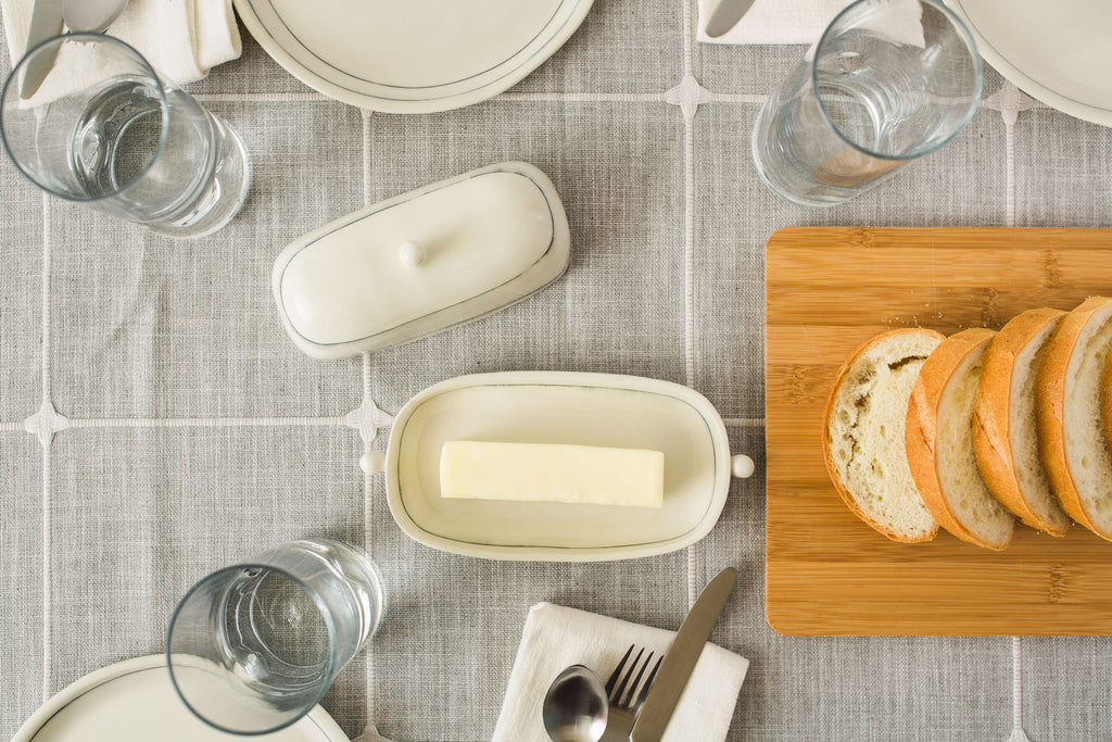 Butter dish measures approximately 9 inches long by 4 inches wide by 4 inches tall and is dishwasher safe.
